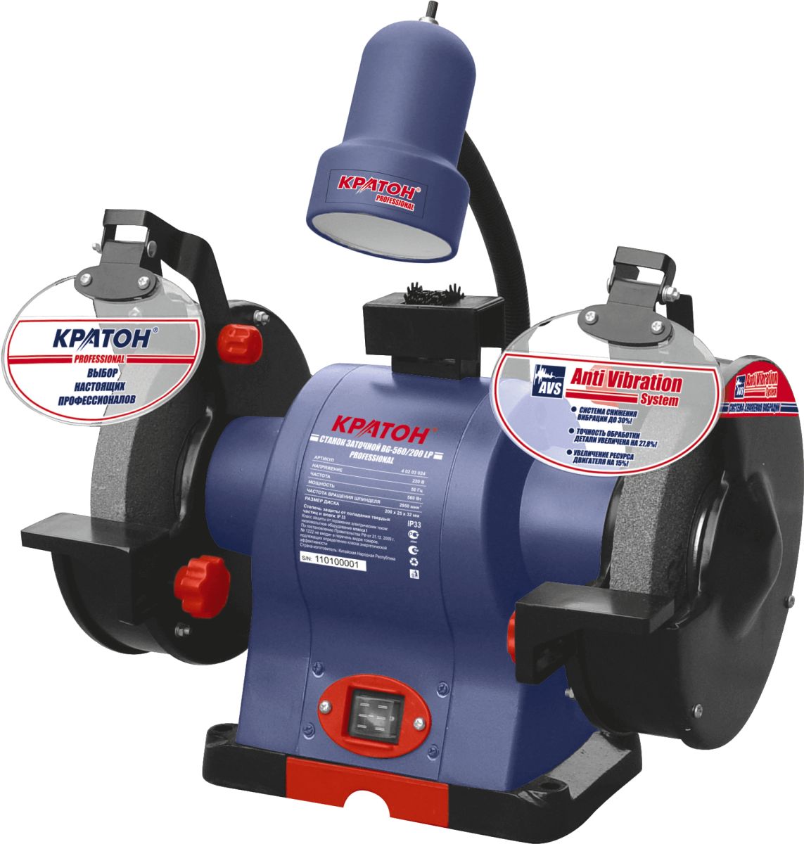 Заточной станок Кратон BG 560/200 4 02 03 022 - это универсальный агрегат, который рекомендуется для использования в домашней мастерской или в гараже. Необходим для заточки как слесарного, так и режущего инструмента, снятия излишков металла с обрабатываемых заготовок. Номинальная мощность двигателя составляет 560 Вт. На станке установлены шлифовальные круги диаметром 200 мм. Станок прост в использовании и не требует специального ухода, достаточно только содержать его в чистоте