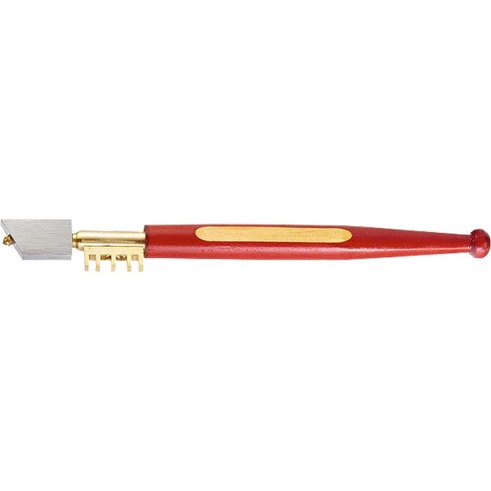 Алмазный стеклорез Sparta 872405 успешно справляется с резкой стекла и зеркал толщиной до 7 мм. Выполнение этой задачи облегчает головка особой формы. Рабочим элементом является искусственный алмаз, рассчитанный на длину реза 3000 м, поэтому инструмент прослужит долго даже при частом использовании. Подходит для профессионального и бытового применения. ПреимуществаФункциональность — специальные пазы размером 2, 3, 2 х 4 мм позволяют отламывать узкие полоски и удалять излишки стекла. Высокое качество выполняемых работ — алмазный режущий элемент обеспечивает точный рез. Долговечность — лаковое покрытие защищает рукоятку от рассыхания. Комфортная работа — эргономичная деревянная рукоятка удобно ложится в руку.