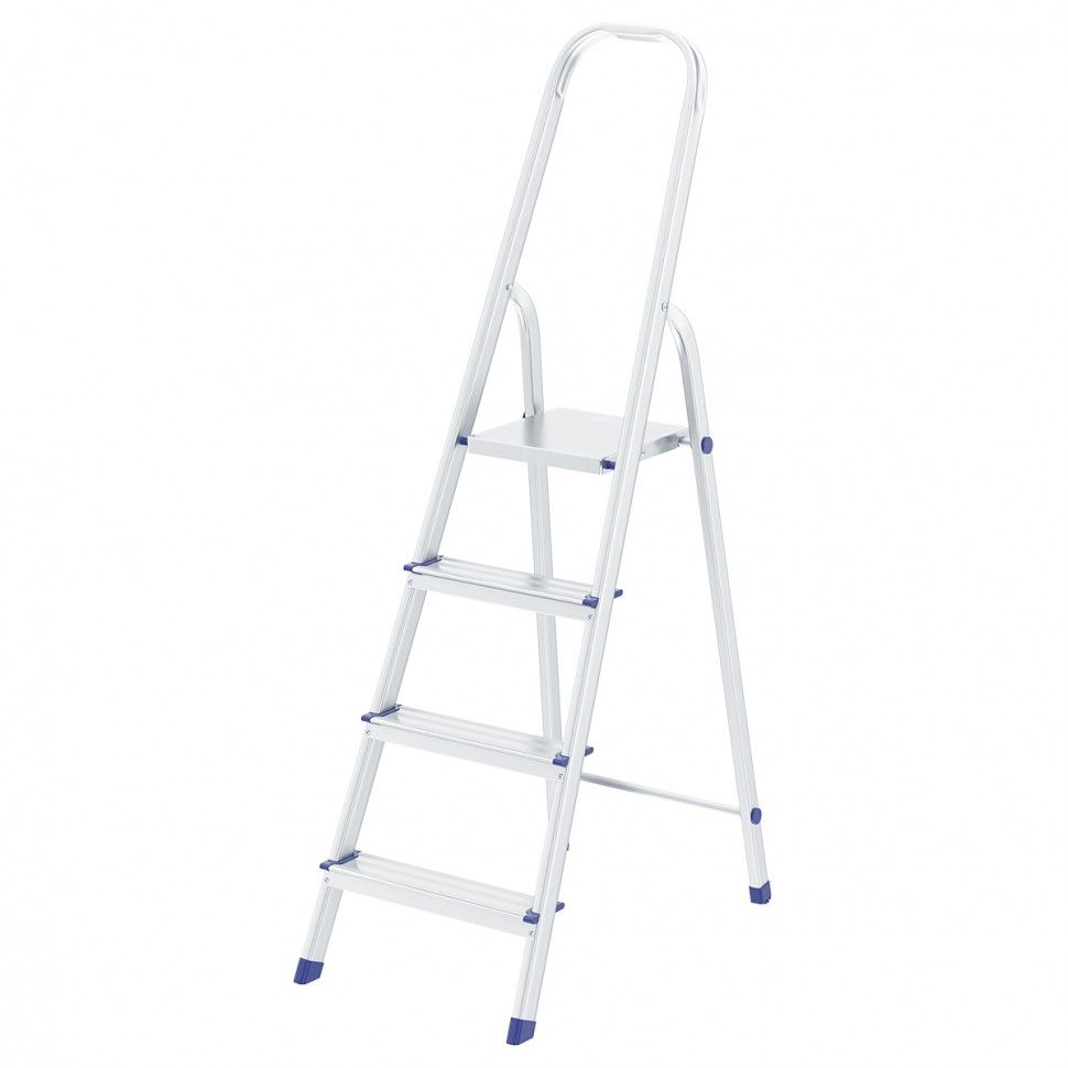 Стремянка алюминиевая Сибртех 97714 с 4 ступенями предназначена для выполнения работ на высоте, превышающей человеческий рост. Высокая дуга безопасности обеспечивает устойчивое положение пользователя. Площадка находится на высоте 80,9 см от опорной поверхности, рабочая высота стремянки составляет 280,9 см (при среднем росте пользователя 170 см). Стремянка пригодится во время строительных и ремонтных работ, позволит без лишних усилий повесить картину или шторы, покрасить стену, достать нужную вещь с антресолей или верхней полки шкафа, а также решить много других бытовых задач. Стремянка устанавливается на плоскую поверхность и не предназначена для работы с электроинструментом. ПреимуществаПродуманная конструкция — стальная рабочая площадка с зацепами надежно фиксирует стремянку в разложенном положении. Надежность — рама из прямоугольного алюминиевого профиля выдерживает нагрузку до 150 кг, широкие ступени закреплены заклепками. Безопасность пользователя — рифленая поверхность ступеней предотвращает скольжение, пластиковые накладки на углах снижают риск травмирования. Защита опорной поверхности от царапин — на ножках имеются пластиковые заглушки. Вес 3,2 кг — со стремянкой без труда справится пользователь с любым уровнем подготовки. Компактность — габариты стремянки в сложенном состоянии составляют 1543 х 440 х 112 мм, поэтому ее удобно хранить и транспортировать. Внешний вид товара может незначительно отличаться от указанного на изображении, что не влечет изменения его качества.