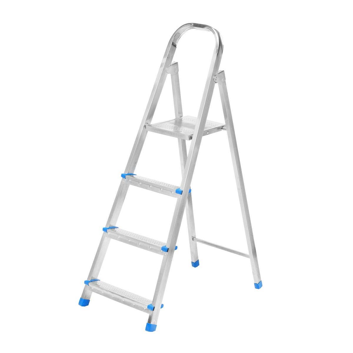 Стальная оцинкованная стремянка Сибртех 97836 с 4 ступенями позволяет повесить полку, картину или шкафчик, достать нужный предмет и решить другие задачи, для которых требуется доступ к предметам на высоте. Рама и ступени из стального профиля выдерживают вес до 120 кг. Расстояние от опорной поверхности до площадки составляет 76,5 см, при среднем росте пользователя 170 см рабочая высота лестницы — 276,5 см. Необходимо соблюдать технику безопасности: размещать стремянку только на ровной плоскости и не использовать ее для работы с дрелью, шуруповертом и другим электроинструментом. ПреимуществаПростая установка — на верхней площадке предусмотрены специальные зацепы для фиксации стремянки в разложенном состоянии. Антикоррозийная защита — стальная поверхность оцинкована, что увеличивает срок службы лестницы. Безопасное использование — рифленые ступени обеспечивают противоскользящий эффект, защитные накладки на углах исключают случайное травмирование пользователя. Аккуратное использование — ножки с противоскользящими накладками не повреждают напольное покрытие. Удобная эксплуатация — высокая дуга безопасности позволяет занять устойчивое положение. Компактность и малый вес — лестница весит 4,3 кг, размеры в сложенном состоянии составляют 1280 х 415 х 105 мм, что удобно для хранения и транспортировки.