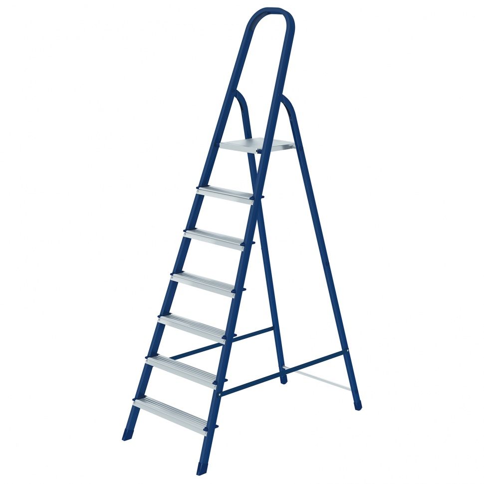 Стремянка стальная Сибртех 97847 с 7 ступенями облегчает выполнение ремонтных, отделочных, а также различных бытовых работ на высоте, превышающей человеческий рост. Площадка находится на высоте 142,5 см от опорной поверхности, рабочая высота стремянки составляет 342,5 см (при среднем росте пользователя 170 см). Высокая дуга безопасности обеспечивает удобную эксплуатацию. Стремянка пригодится дома и на даче. Для обеспечения устойчивости лестницу устанавливают на ровную поверхность, использование электроинструмента во время работы не допускается. ПреимуществаПовышенная прочность — рама и ступеньки изготовлены из стали и выдерживают нагрузку до 150 кг. Надежная фиксация в разложенном положении — рабочая площадка имеет специальные зацепы, также производитель предусмотрел прочные страховочные стяжки. Защита от коррозии — стальной профиль рамы покрыт порошковой эмалью. Безопасность пользователя — широкие профилированные ступени имеют рифленую поверхность, их углы защищены специальными накладками для защиты от порезов и царапин. Защита напольного покрытия — ножки с пластиковыми наконечниками не скользят и не оставляют царапины на опорной поверхности. Удобное хранение — размеры стремянки в сложенном состоянии составляют 2220 х 500 х 105 мм. Внешний вид товара может незначительно отличаться от указанного на изображении, что не влечет изменения его качества.
