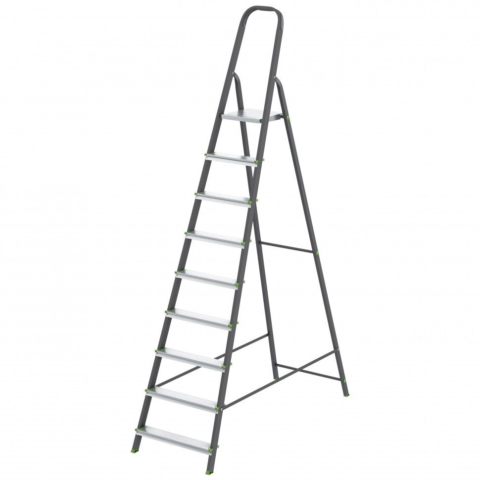 Стремянка, 9 ступеней, стальной профиль, алюминиевые ступеньки, Россия