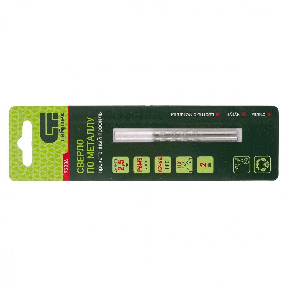Сверло по металлу, 2.5 мм, Р6М5.2 шт Сибртех