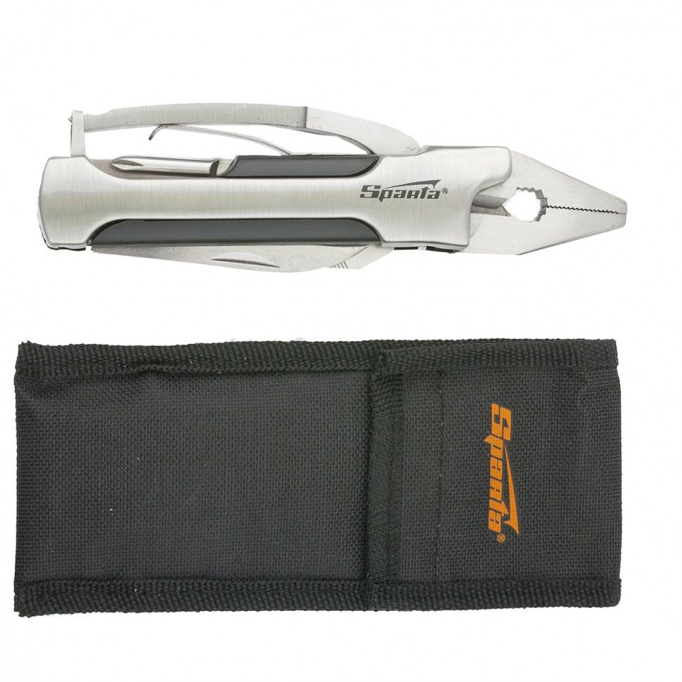 Трансформер Sparta 176085 выполняет 10 функций и может использоваться для разрезания различных материалов, закручивания и откручивания резьбового крепежа, фиксации предметов, а также открывания бутылок и консервных банок. Инструмент пригодится дома, на даче, в гараже, а также в походе, на рыбалке или охоте. ПреимуществаПрочность и износостойкость — трансформер изготовлен из инструментальной стали. Эргономичность — корпус с пластиковыми вставками удобно ложится в руку. Удобное хранение и транспортировка — в комплект поставки входит специальный чехол. Компактность — мультитул длиной 145 мм удобно носить в кармане, сумке или рюкзаке.