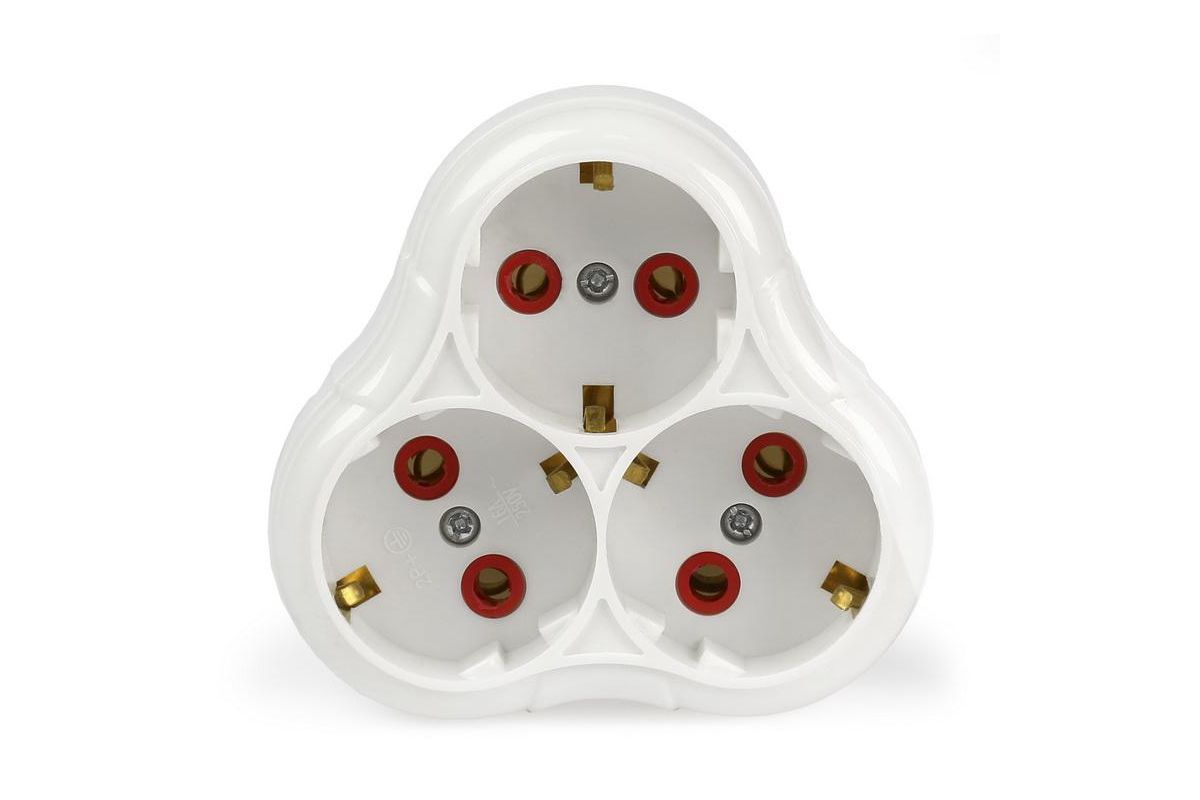 Тройник Smartbuy, 3 гнезда с заземлением круглый белый 16А 250В
