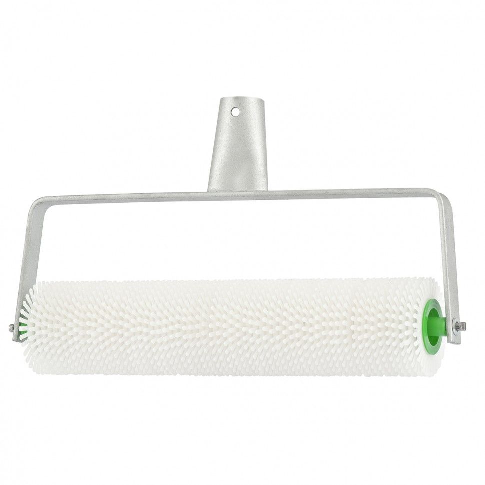 Игольчатый валик Сибртех 81103 длиной 400 мм используется для монтажа наливных полов. Позволяет удалять пузырьки воздуха из толщи еще жидкого покрытия путем его интенсивного прокатывания по распределенному на поверхности основы раствору. Валик длиной 400 мм можно использовать на поверхности большой площади. Длина иголок 13 мм оптимальна для покрытий небольшой толщины. ПреимуществаФункциональность — валик обеспечивает качественный монтаж ровного полимерного пола. Долговечность — металлический стержень валика рассчитан на длительное использование. Простой уход — валик легко отмывается от остатков раствора.