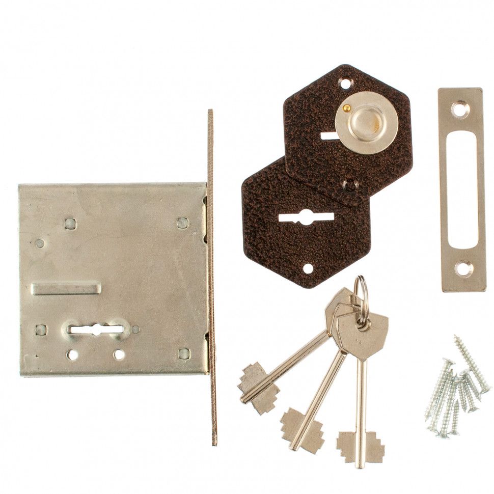 Врезной замок Сибртех ЗВ-1 91665 сувальдного типа используется для запирания внутренних дверей жилых и хозяйственных помещений. Замок имеет 1 класс секретности — его невозможно вскрыть методом подбора ключей. ПреимуществаДолговечность — замок оцинкован для защиты от коррозии. Защита от случайного запирания — открыть или закрыть замок изнутри можно только ключом. 3 ключа в комплекте — изготавливать дубликаты не требуется.